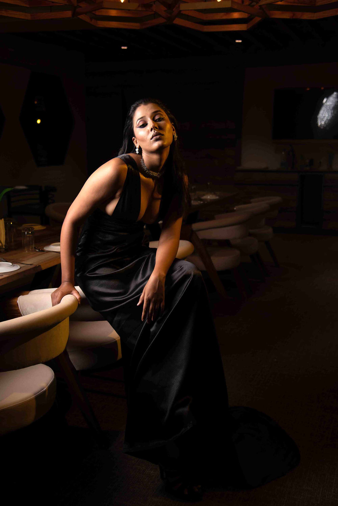 HERCULEAN'S "THE SABLE MIDAS" BLACK TRAIL GOWN