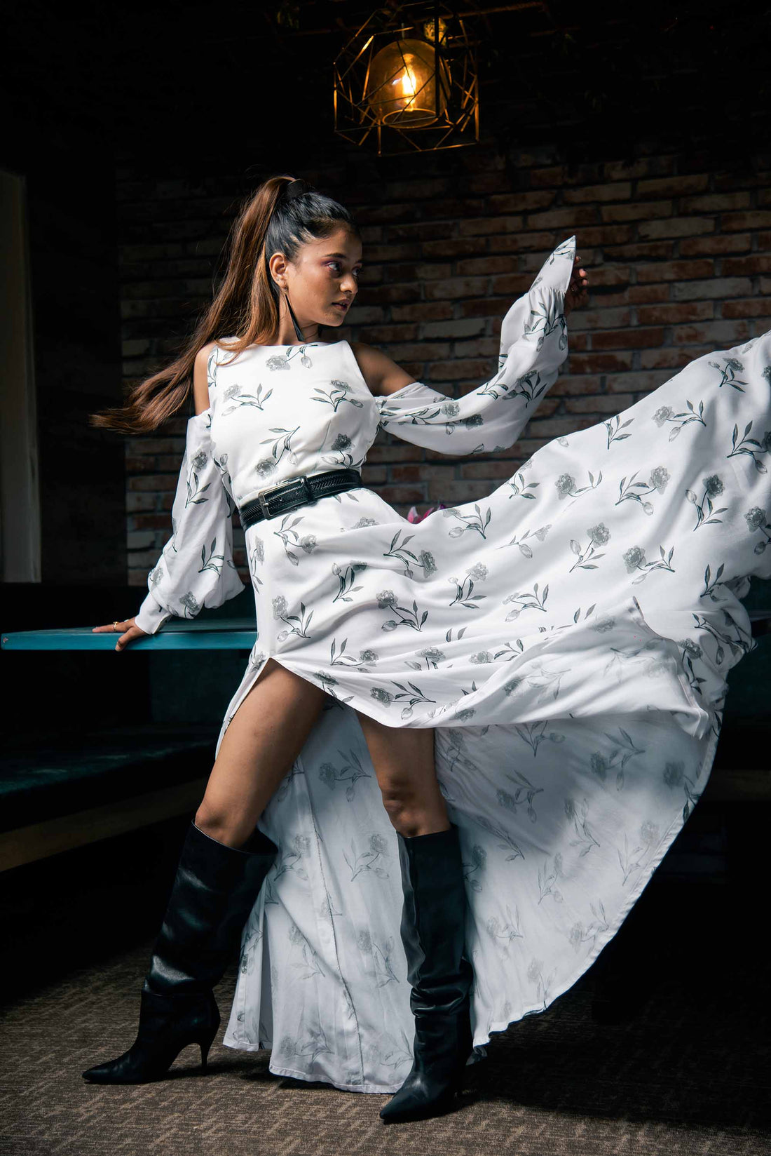 HERCULEAN'S "THE SUBTLE SWAN" FLORAL PRINTED GOWN