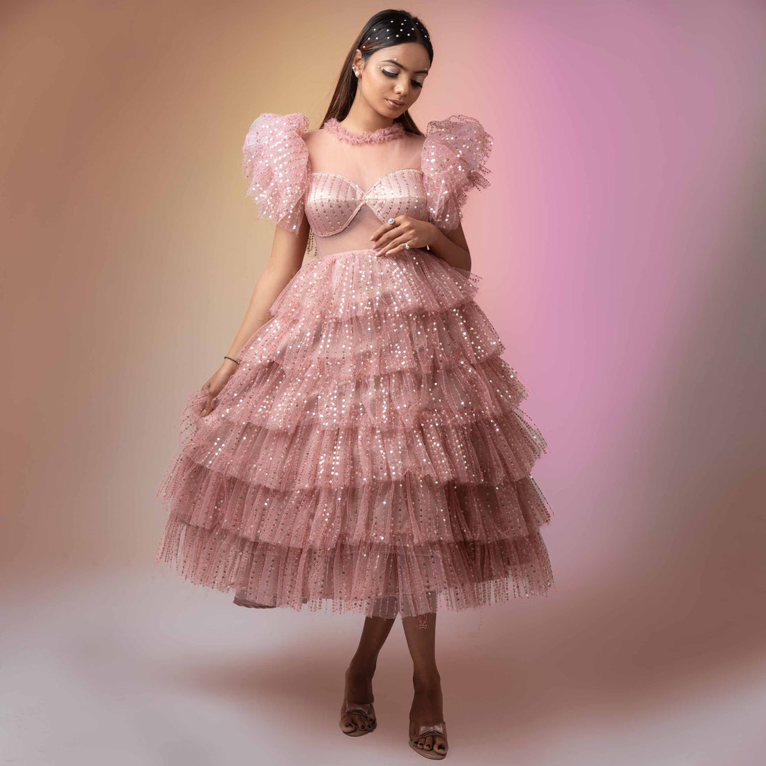 ROMANTICIZE'S BLUSH PINK RUFFLE TIERED MIDI