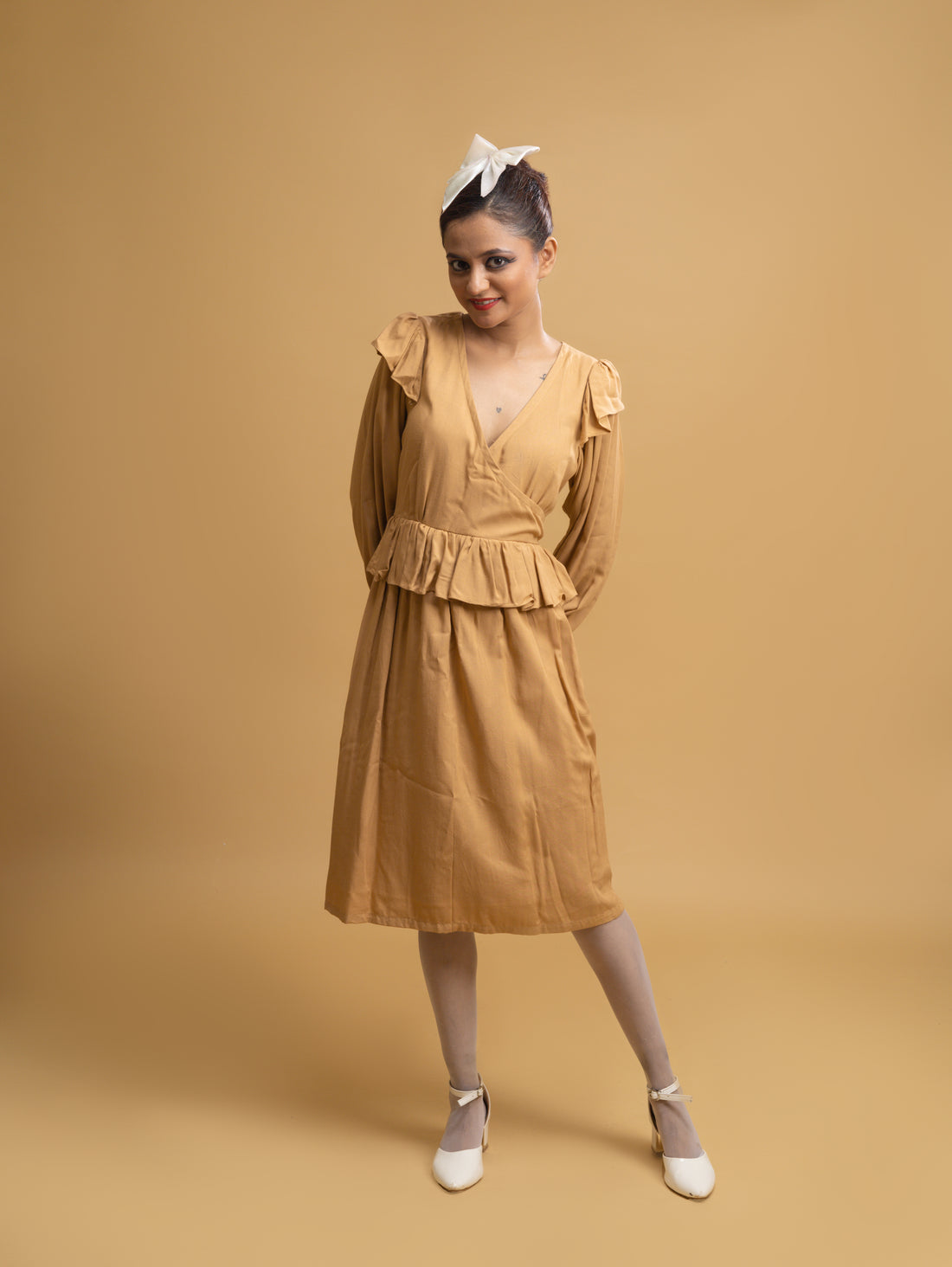 TAN RUFFLE TIERED DRESS