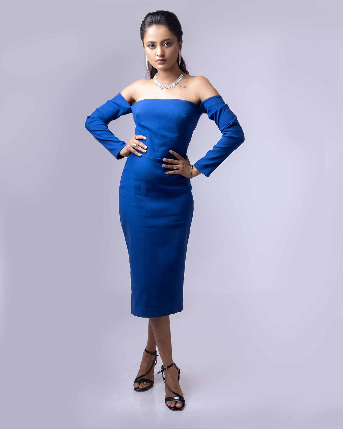 DRAMAQUEEN'S SAPPHIRE OFF SHOULDER FULL SLEEVES DRESS