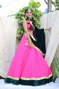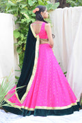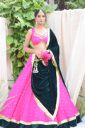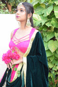 A LA MODE HERITAGE'S FUCHSIA PINK LEHENGA BLOUSE WITH EMERALD GREEN VELVET DUPATTA