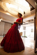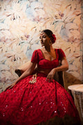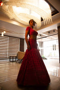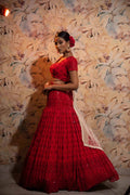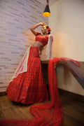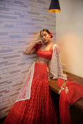 A LA MODE HERITAGE'S SCARLET FISHCUT LEHENGA BLOUSE WITH NET DUPATTA