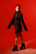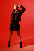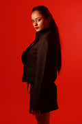 ATA's black mini blazar is a versatile and stylish garment considered a classic wardrobe staple that never goes out of style. The black color adds a touch of sophistication and versatility, making it easy to pair with various outfits , can be styled in numerous ways. It can be paired with jeans and a t-shirt for a casual and edgy look, layered over a dress for a chic ensemble, or worn with tailored pants or skirts for more polished appearance. This is a wardrobe essential that can be worn season after season. Its versatility, timeless appeal, and ability to enhance a wide range of outfits make it a reliable and fashionable choice.
