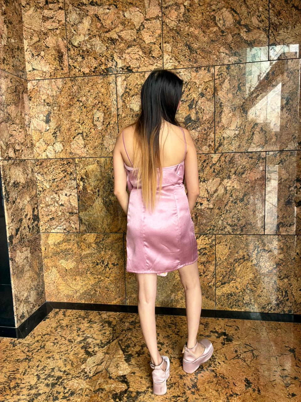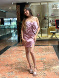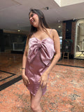 Glory is adorning The blush pink bow robe that embodies elegance and comfort - all in one luxurious garment. Crafted from soft, satin-like fabric, it drapes gracefully around the body, creating a silhouette of timeless sophistication. The delicate blush pink hue adds a touch of femininity, while the oversized bow detail on the bust adds a playful yet refined accent.Whether lounging at home or preparing for a special occasion, slipping into this robe is a ritual of indulgence and self-care. Its gentle embrace wraps the wearer in a cocoon of serenity, inviting moments of relaxation and tranquility.