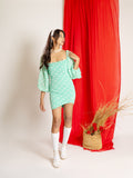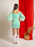 DRAMAQUEEN'S MINT POLKA POUF SLEEVES ROBE