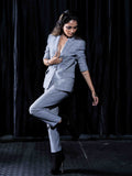 Elevate your professional persona with ATA's pinstripe single breasted power suit, a sartorial masterpiece that effortlessly merges sophistication with contemporary flair. The subtle yet distinctive pinstripes add a touch of classic charm, resonating with a time-honored tradition of business attire. The grey hue, chosen for its versatility and timeless appeal, exudes confidence and competence. Meticulously tailored for a perfect fit, this power suit is not just an ensemble; it's a statement. Whether navigating the corporate landscape or making a poised entrance at a formal event, the pinstripe grey power suit is a symbol of authority and style. Its clean lines and sharp silhouette convey a sense of purpose, while the thoughtful detailing reflects a commitment to quality. Embrace the power of grey and the impact of precision tailoring — because when fashion meets professionalism, the result is an ensemble that commands attention and leaves an indelible mark.