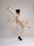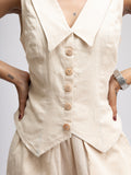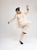 SIZE: MODEL IS WEARING STANDARD SIZE 6 (TAILORED WAISTCOAT) , STANDARD SIZE 10 ( OVERSIZED SHIRT) & STANDARD SIZE 6 (PYJAMA TROUSERS)