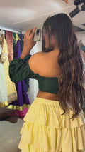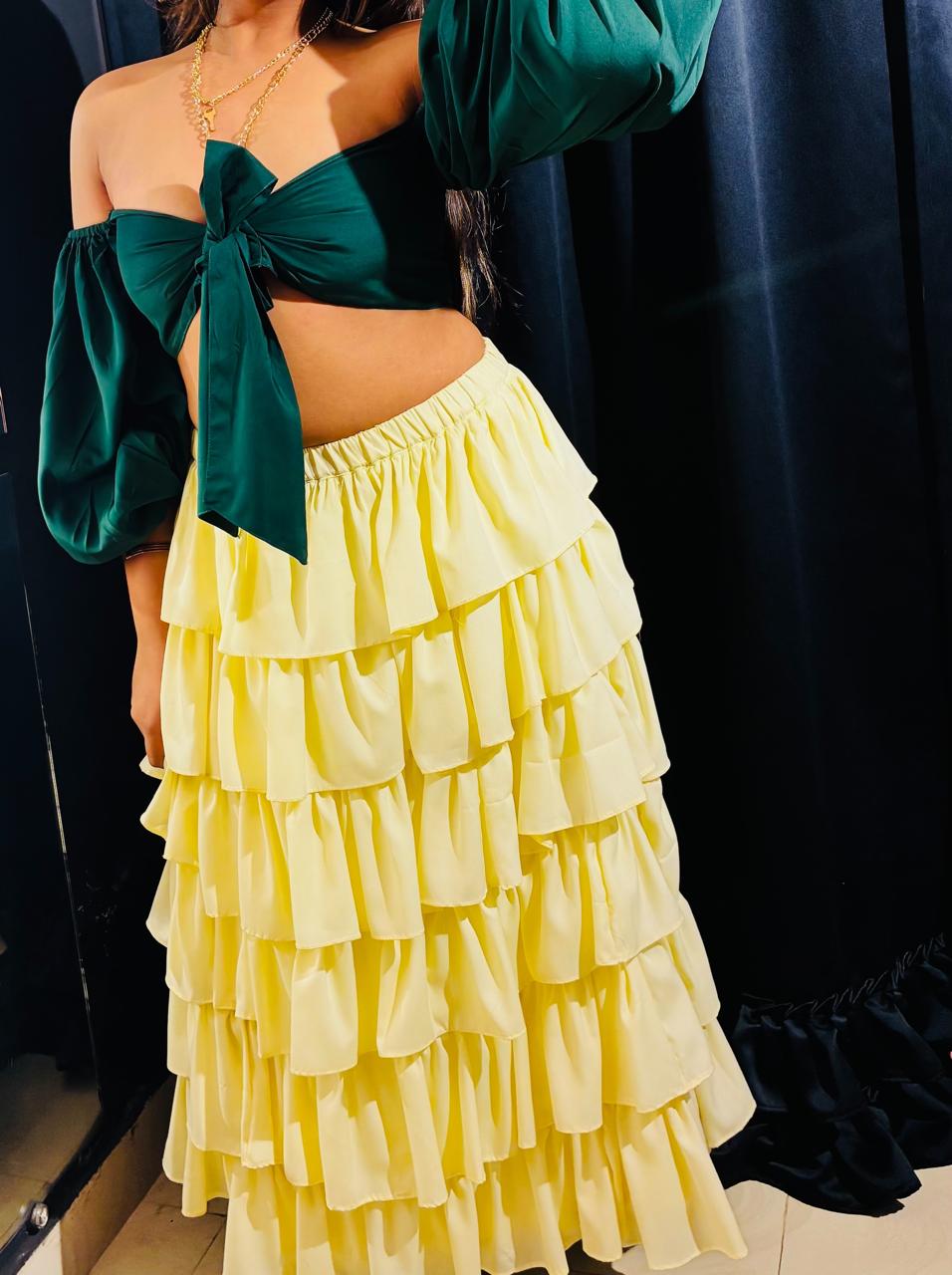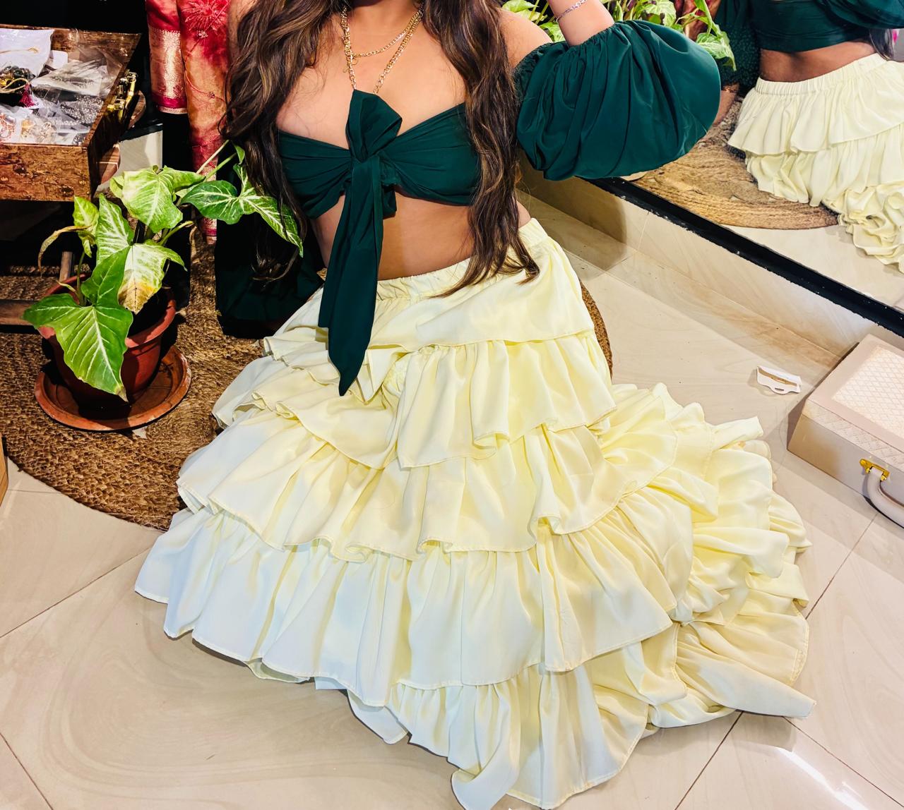 Unnati's DREAMY RUFFLED TIERED LEMONY SKIRT & EMERALD TIE KNOT TOP