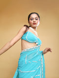 RANI's AQUA SILVER SAREE WITH CORSET & PETICOTE