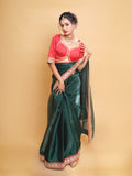 RANI's EMERALD GREEN SHINE-ON SAREE WITH RED KOTI BLOUSE & PETICOTE
