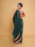 Rani's emerald green shine-on saree exudes a rich, regal charm, making it a standout piece for any special occasion. The deep, vibrant shade of emerald green symbolizes luxury and sophistication, making it a perfect choice for weddings, festive celebrations, or formal events.