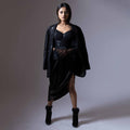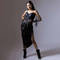 ROMANTICIZE'S BLACK SHIMMER OVERLAP SATIN DRESS
