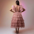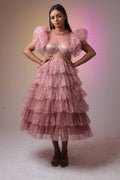 ROMANTICIZE'S BLUSH PINK RUFFLE TIERED MIDI