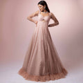 rose gold sequenced gown , crafted with an attractive glittery & flattering