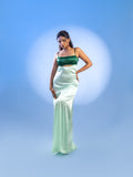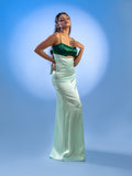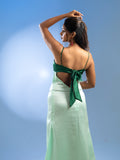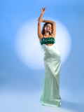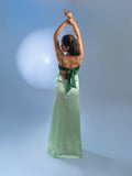 The soft, mint hue is perfect for a spring evening out, and the flowing silhouette will make you feel like a goddess. Sophisticated and glamorous, like you were ready to slip into a bygone era of Old Hollywood glamour. Whether lounging around or dressing up for a night out, this silk satin slip gown is the epitome of understated elegance.