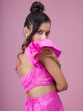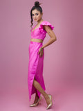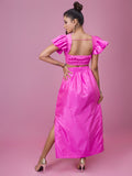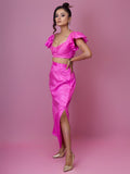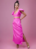 The ATA's Sparkling ruffle corset & high waist slit skirt is a daring yet captivating combination that seamlessly blends boldness with grace. The corset, adorned with cascading ruffles, adds a romantic and feminine touch, sculpting the silhouette with an air of vintage allure. The ruffles not only evoke a sense of whimsy but also create dynamic movement, making a striking visual statement. Paired with a slit skirt, the outfit takes on a contemporary edge, revealing just the right amount of skin to balance the dramatic flair of the corset. The high slit in the skirt introduces an element of sensuality, allowing for an elegant display of confidence and style. Together, the ruffle corset and slit skirt create a harmonious fusion of classic and modern aesthetics, offering a captivating ensemble that is perfect for making a memorable entrance at any event. This outfit is not just a combination of fabrics and embellishments; it's a celebration of bold femininity and a testament to the transformative power of fashion.